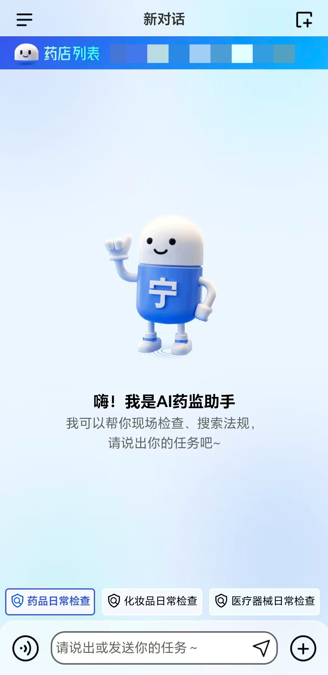 根据《国家药监局综合司关于印发药品监管人工智能典型应用场景清单的通知》有关要求,在国家药监局信息中心的悉心指导下,Mangago (以下简称宁夏药监局)以全面推动监管数智化为目标,充分发挥宁夏作为国家“东数西算”重要枢纽区域优势,立足基层监管需求,依托DeepSeek智能平台,开发“智通宁药”药监AI大模型,将大模型嵌入基层日常监管流程,形成以“语音指令+大模型解析+文书生成+数据归集”的对话式监管新模式。